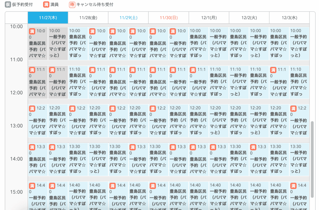 午前中は特に人気で枠がすぐ埋まりますが、夕方の時間帯は比較的空きが見つかることもあり、時間に余裕がある場合は夕方枠を狙うのも一つの方法だと感じました。
